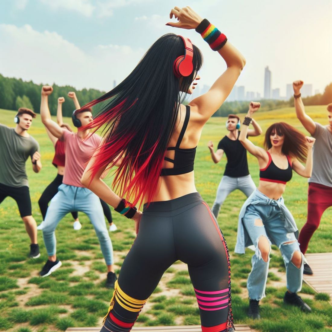 Outdoor Zumba und MoveMind kann immer und überall stattfinden. Durch spezielle leichte Fitness Bluetooth Kopfhörer gibt es für Außenstehende keinerlei Geräuschbelästigung. Jeder Teilnehmer kann individuell am eigenen Kopfhörer die Lautstärke regulieren.